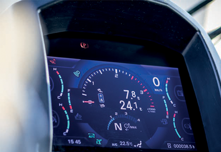 Il Load Pilot è un ampio display di facile lettura situato al centro del monitor principale. Visualizza il carico attuale, il peso del materiale già caricato, quanto resta da caricare per raggiungere un obiettivo prestabilito e le registrazioni di carico giornaliere. Utilizzando i dati della macchina sulla movimentazione del materiale e il consumo di carburante, fornisce valori precisi sul rendimento del carburante e le prestazioni complessive, aiutando l’operatore a lavorare in modo più efficiente.